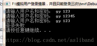 (只允许输入三次密码,如果密码正确则提示登录成,如果三次均输入错误,则退出程序。