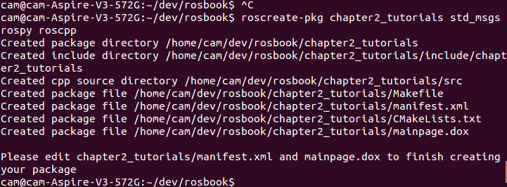roscreate-pkg chapter2_tutorials std_msgs rospy roscpp