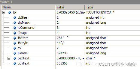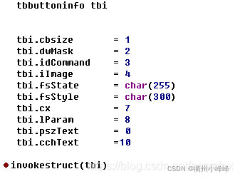 使用 TBBUTTONINFO 操作工具栏,使用用到byte类型的字段,