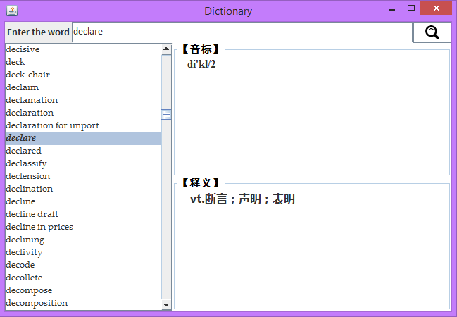 其实要求不高,大概就是一个词典的查询软件,提供了后台词典,只要完成其中的文件I/O,进行String的处理就可以了。