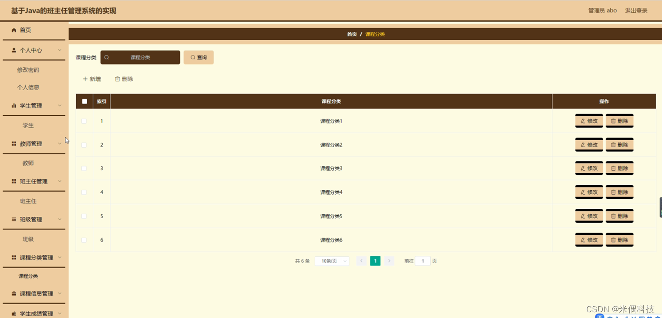 课程分类管理,在课程分类管理页面可以对车索引,课程分类等内容进行修改或删除等操作,如图5-6所示。