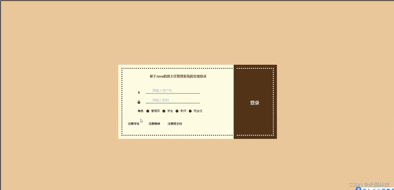 用户进入系统前在登录页面根据要求填写用户名和密码,选择角色等信息,点击登录进行登录操作。运行结果如图5-1所示。