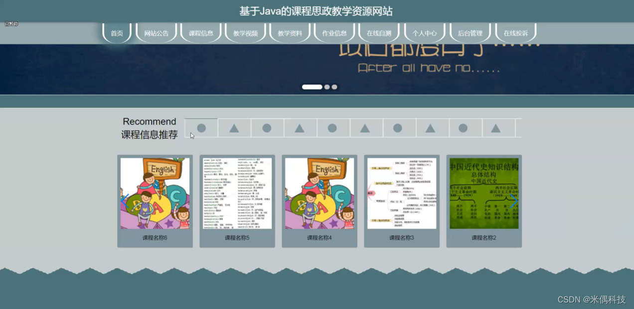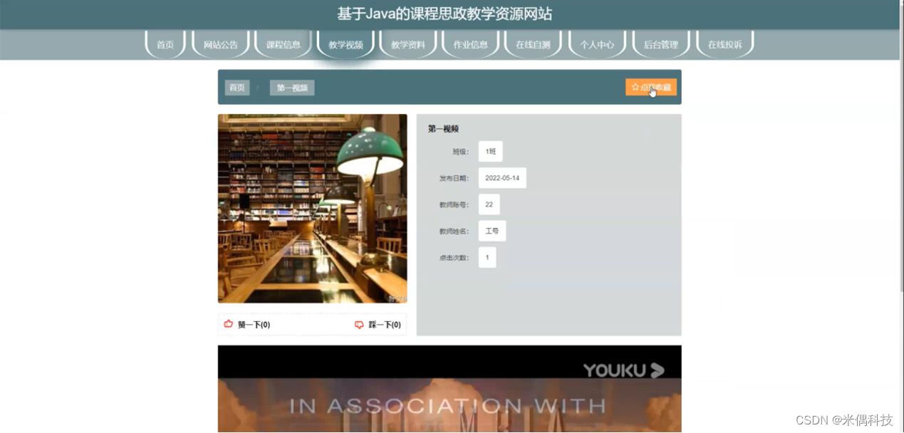 该项目是一个课程思政教学资源网站,采用Vue前端、Java后端SSM框架和MySQL数据库技术。网站提供多样化教学资源,促进教学互动和个性化学习,支持管理员后台管理。功能包括课程信息、教学视频、教学资料的展示与管理,以及学生注册、个人中心等模块。