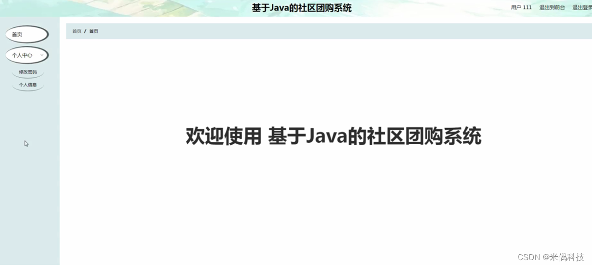 用户登录进入系统后台可以对首页,个人中心等信息进行详细操作,如图4-12所示。
