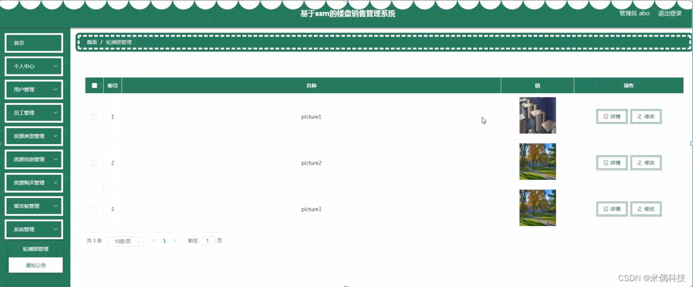 系统管理,在系统管理页面可以对轮播图管理、通知公告等功能进行相应的操作,如图5-13所示。