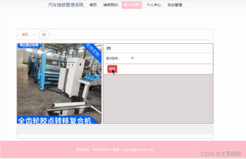3、用户:实现首页、个人中心、预约登记管理、配件购买管理等相应操作;