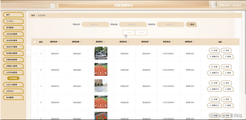图5-15社区场地管理界面