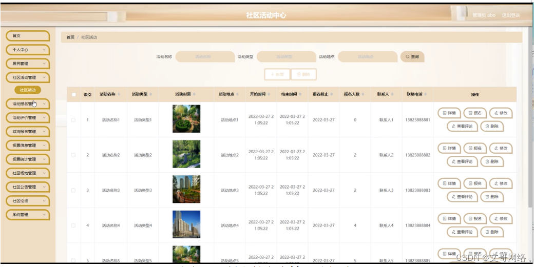 图5-9社区活动管理界面