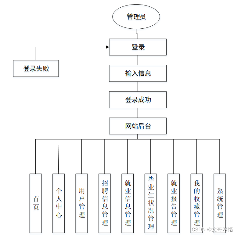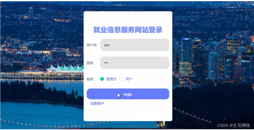 管理员登录,通过填写账号、密码、权限等信息,输入完成后选择登录即可进入就业信息服务网站,如图5-6所示。