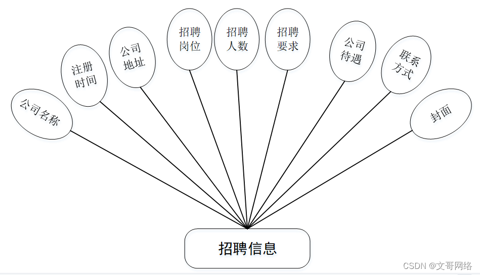 通过就业信息服务网站的功能进行规划分成几个实体信息,实体信息将通过ER图进行说明,本系统的主要实体图如下: