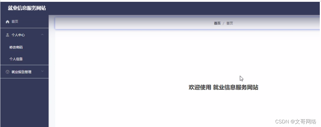 点击后台管理,用户进入到系统后台,可以对首页、个人中心、就业报告管理等功能进行相关操作,如图5-5所示。