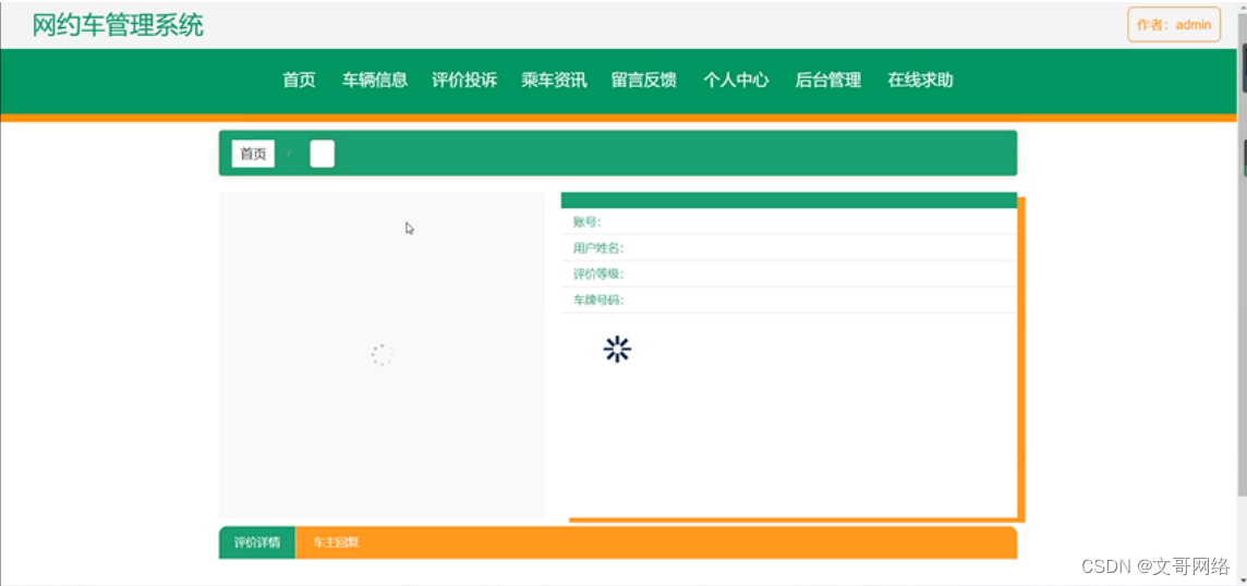 网约车管理系统网站设计,在系统首页可以查看网站首页、车辆信息、投诉评价、乘车资讯、留言反馈、个人中心、后台管理、在线求助页面等内容,如图5-1所示。