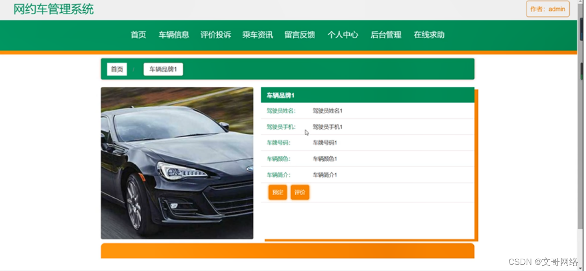车辆信息,在车辆信息查询页面可以查看驾驶员姓名、驾驶员手机、车票号码、车辆颜色、车辆简介等内容,并可根据需要对车辆预定和评价等详细内容等操作,如图5-13所示。