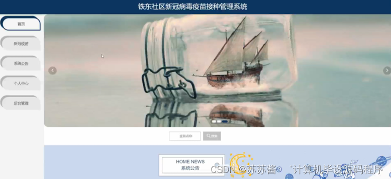 用户通过注册,登录到系统后,可以对首页、新冠疫苗、系统公告、个人中心、后台管理等进行操作,用户功能如图5-12所示。
