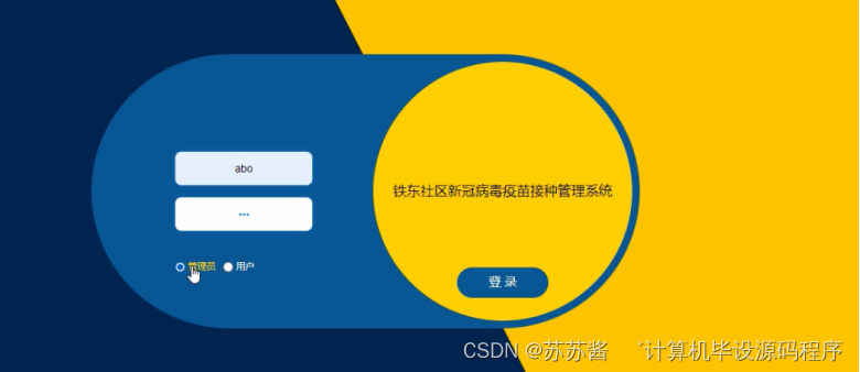 铁东社区新冠病毒疫苗接种管理系统,点击登录,通过输入账号和密码,选择登录角色进行登录,管理员登录界面如图5-1所示:
