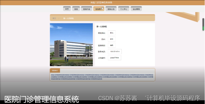 医院简介,在医院简介页面可以查看医院地址,院长,医院级别,联系电话,占地面积等内容,如图5-6所示。