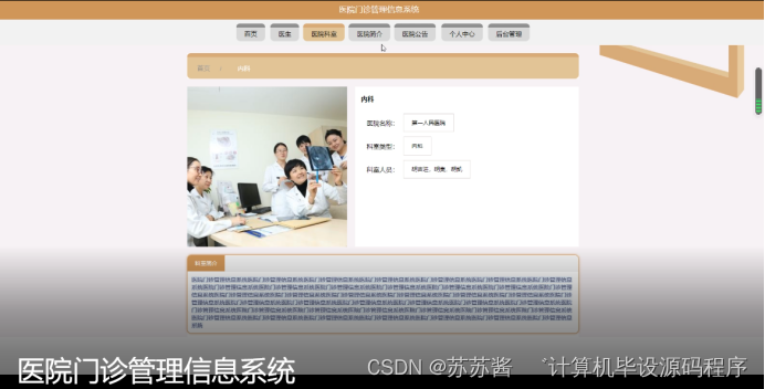医院科室,在医院科室页面可以对医院名称,科室类型,科室人员等内容,如图5-5所示。