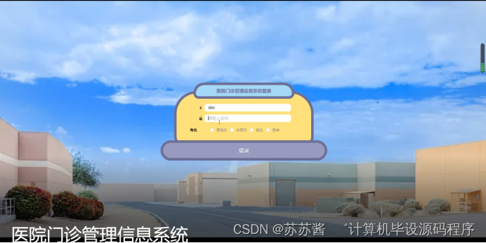 系统用户登录,在登录页面根据要求填写用户名和密码,选择角色等信息,点击登录进行登录操作,如图5-1所示。