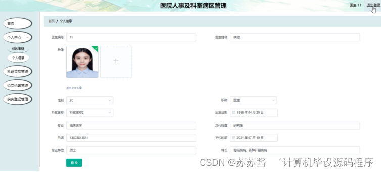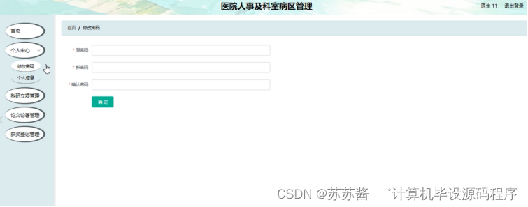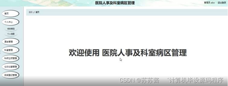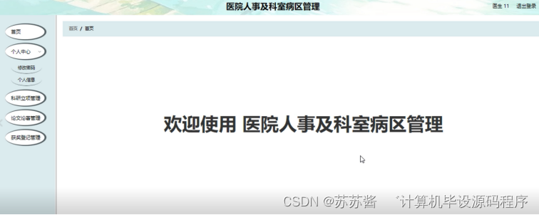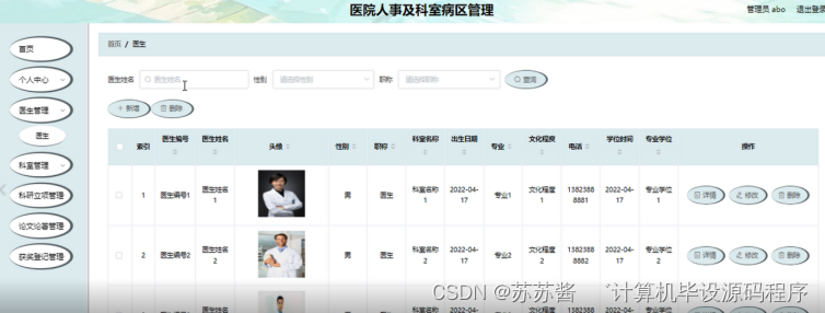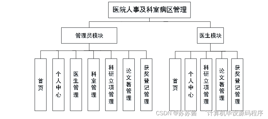 本课题要求实现一套医院人事及科室病区管理,系统主要包括管理员模块和医生模块功能模块。