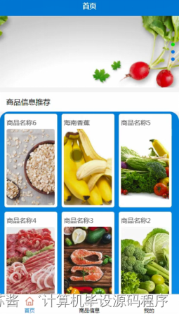 用户登录进入系统首页可以查看首页、商品信息、我的等功能进行详细操作,如图5-3所示。
