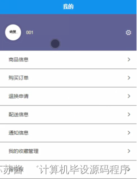 我的,在我的页面可以查看商品信息、购买订单、退换申请、配送信息、通知信息、我的收藏管理、留言板等内容进行详细操作,如图5-5所示。
