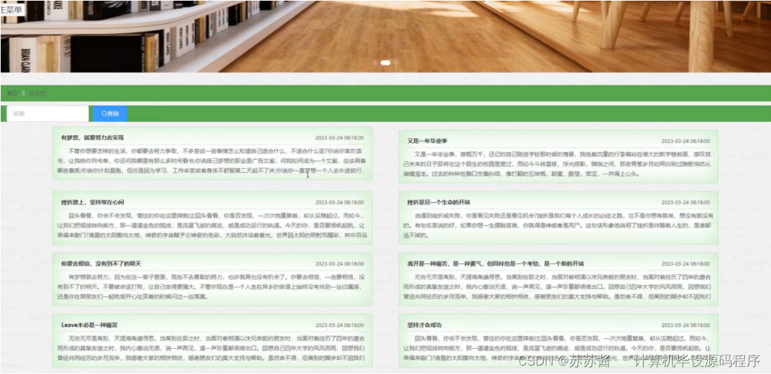 用户点击公告栏,进入公告栏界面,可输入标题进行查询的操作,并可点进去查看详细的公告内容,界面如图5-5所示:
