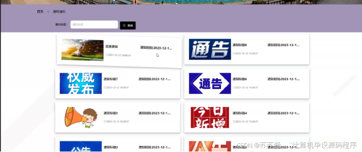 赛程通知:在赛程通知页面的输入栏中输入通知标题进行查询,可以查看到赛程通知详细信息,并根据需要进行操作;赛程通知页面如图5-5所示: