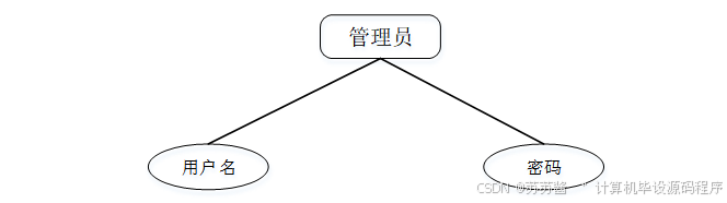 分析高校体育竞赛管理系统的数据结构后,在E-R图中分析管理员登录时的模式,需要输入用户名与密码,管理员信息E-R实体如如图4-3所示。