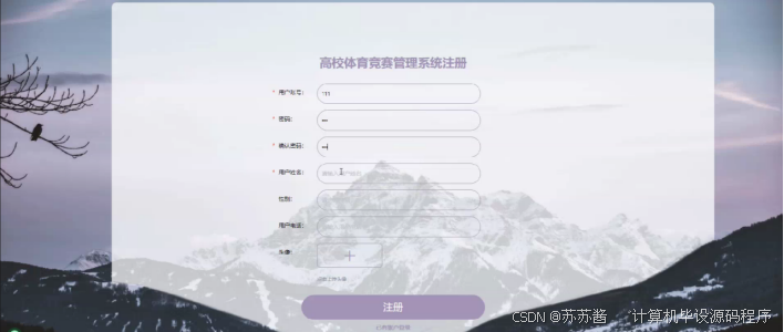 系统注册:在系统注册页面的输入栏中输入用户注册信息进行注册操作,系统注册页面如图5-2所示: