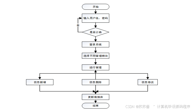 在登录流程中,用户首先在Vue前端界面输入用户名和密码。这些信息通过HTTP请求发送到Java后端。后端接收请求,通过与MySQL数据库交互验证用户凭证。如果认证成功,后端会返回给前端,允许用户访问系统。这个过程涵盖了从用户输入到系统验证和响应的全过程。如图5-5所示。
