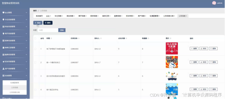 随着城市化进程的加速,人们对居住环境和生活质量的要求越来越高。传统的物业管理方式面临着诸多挑战,如信息管理效率低下、服务响应不及时、资源分配不合理等。为了满足现代社区对高效、便捷、智能化物业管理的需求,开发一套基于Spring Boot的物业管理系统显得尤为重要。Spring Boot作为一种高效的开发框架,结合MySQL数据库和Vue.js前端技术,能够快速构建出稳定、高效的物业管理平台,为物业管理带来全新的解决方案。