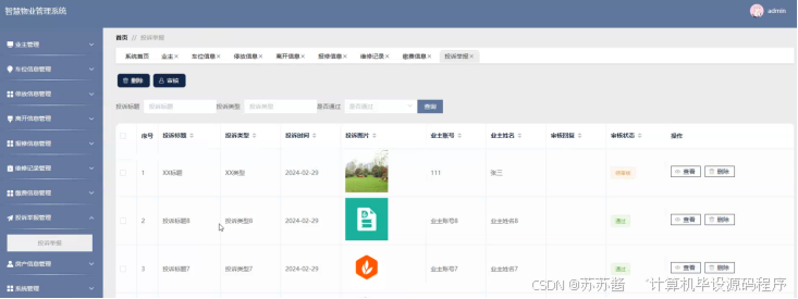 计算机毕设Springboot物业管理系统f1y6ia97 (配套有源码 程序 mysql数据库 论文)本套源码可以先看具体功能演示视频领取,文末有联xi 可分享