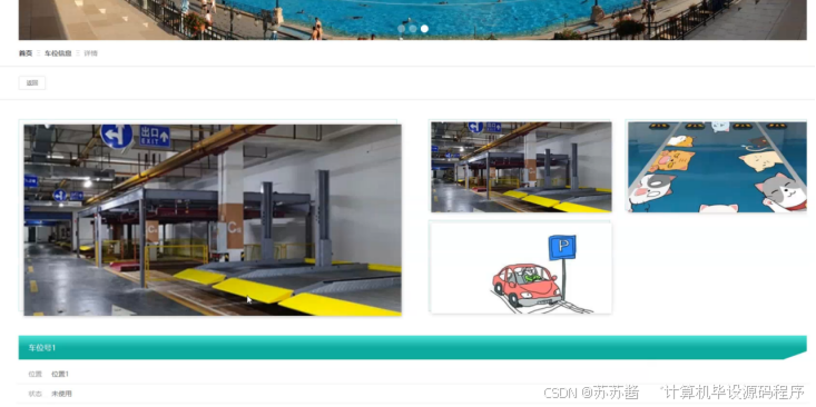 车位信息:在车位信息页面的输入栏中输入车位号和位置进行查询,可以查看到车位详细信息,并根据需要停放操作;车位信息页面如图5-3所示: