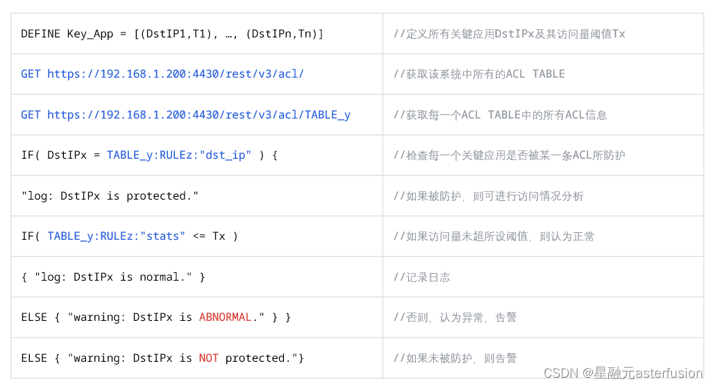 云化园区网络架构天然地支持NetDevOps。下图我们围绕一个安全运维场景简单举例说明:AsterNOS SDK所提供的REST API中,包含对ACL各个字段和统计数据的访问接口,通过调用这些接口,即可直接获得ACL的这些信息用以分析。