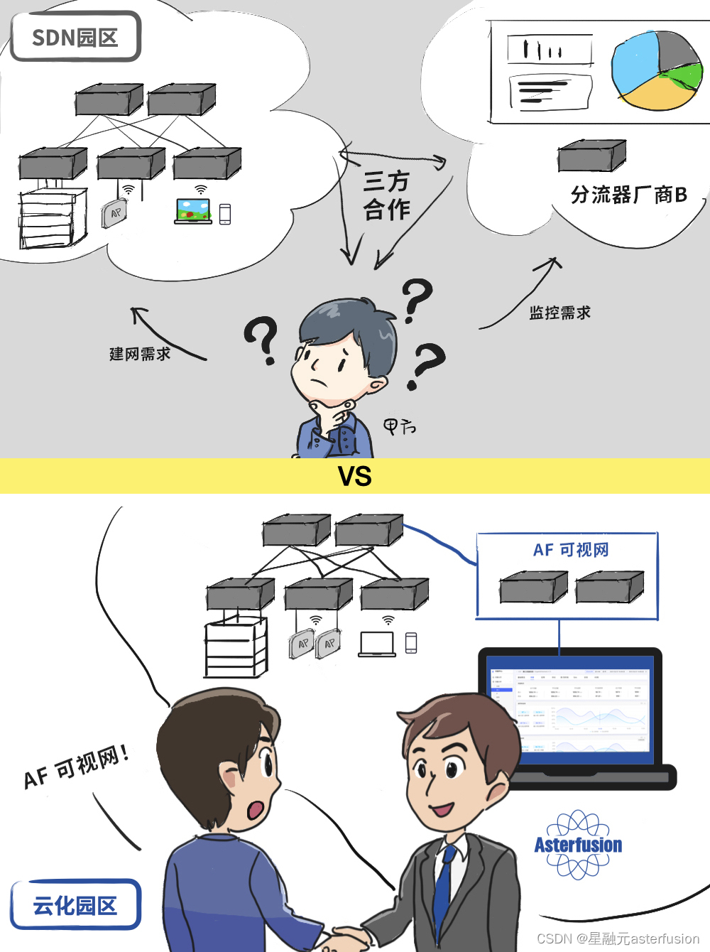 下文将全面对比星融元云化园区方案和SDN园区方案。