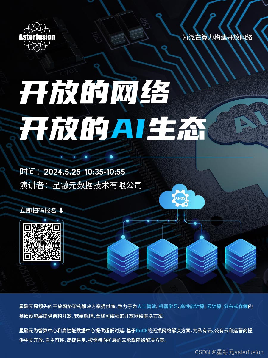 还有全面兼容UEC规范的RoCE网络智能负载均衡优化,AI智算中心200G/400G混合组网,以及与现有成熟的云网能力的丝滑融合……更多创新分享,就在5月25日(本周六)第四届网络开源技术生态大会~