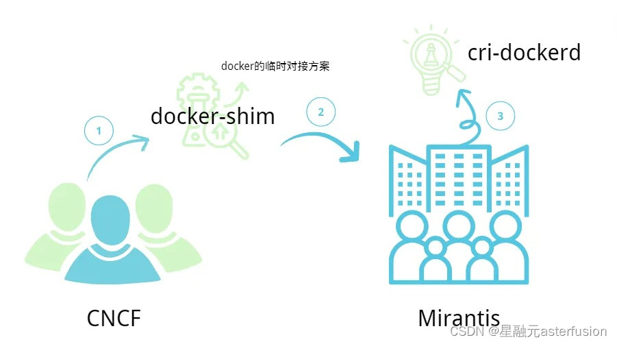 在K8s诞生时,CNCF(云原生计算基金会——主导了K8s项目)便致力于推行一个标准的容器对接方案CRI,符合该容器标准的容器技术能够被K8s纳管,但是docker当时已经作为市场主流方案被接受,因此不符合该标准。出于市场原因K8s最开始在内部运行了名为docker-shim的垫片程序作为与docker的临时对接方案,在1.24版本后,K8s便放弃了与docker的兼容工作,将该垫片剥离出去。这方面工作就由Mirantis公司(docker母公司)接手,开发出名为cri-dockerd的垫片程序进行兼容工作。自此,如果想使用K8s管理docker,便需要使用一个名为cri-dockerd的容器运行时作为中间垫片。