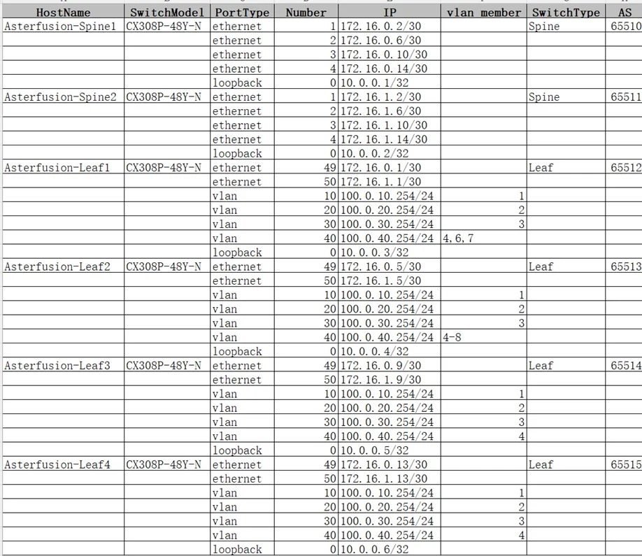 MVD 工具将解析上一步骤得到的JSON文件中的设备信息、BGP邻居信息,并为集群中的交换机生成对应配置。 运行过程示例如下:
