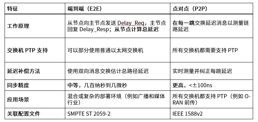 点对点(Peer-to-Peer, P2P)机制在每一网络跳段(hop)间单独测量链路延迟,实时修正每段路径带来的时间误差。