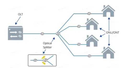 - OLT(光线路终端):负责带宽管理、信号传输与网络控制,将下行电信号转为光信号并通过光纤传输,同时接收上行光信号并转回电信号。