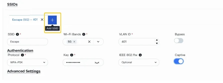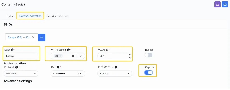 统一配置界面:通过组织->场所->配置->无线配置模板,运维人员可以集中管理所有AP的逃生策略,确保配置一致性。