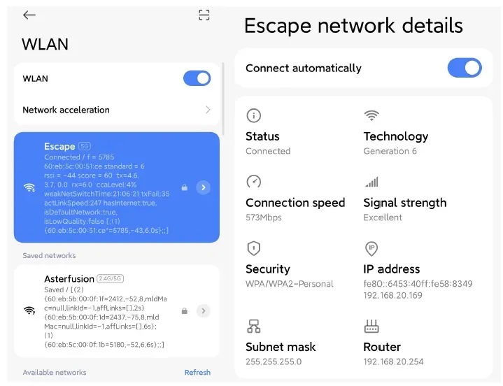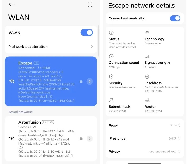 认证服务正常时,AP仅释放VLAN 401的SSID,终端扫描到"Escape" SSID,完成认证后获取192.168.17.xx地址,业务访问正常。