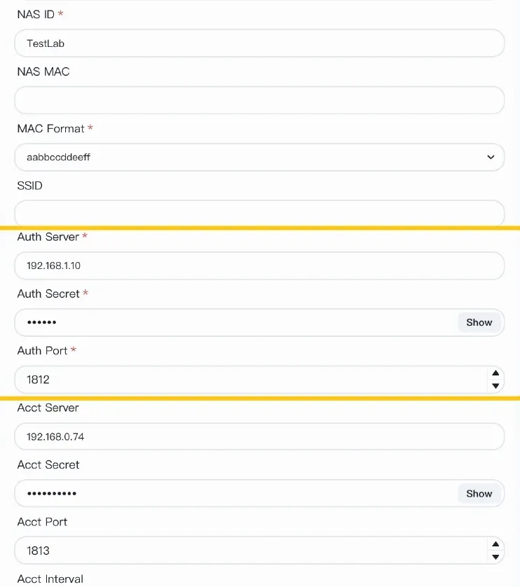 配置强制⻔⼾认证的⽅式为“外置-UAM”,并在继续配置域名⽩名单(即Portal 服务器的域名或者IP)、外置-UAM 服务器、密钥、端⼝,认证服务器的密钥、端⼝等必要信息。(具体请参考配置手册)