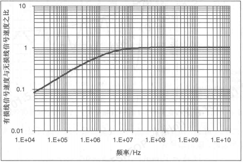 在低损耗区,有损线中信号的速度与无损传输线中的相同,信号速度不受损耗的影响。
