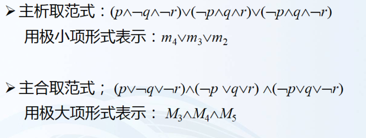 析取范式:有限个简单合取式的析取得到的命题公式。