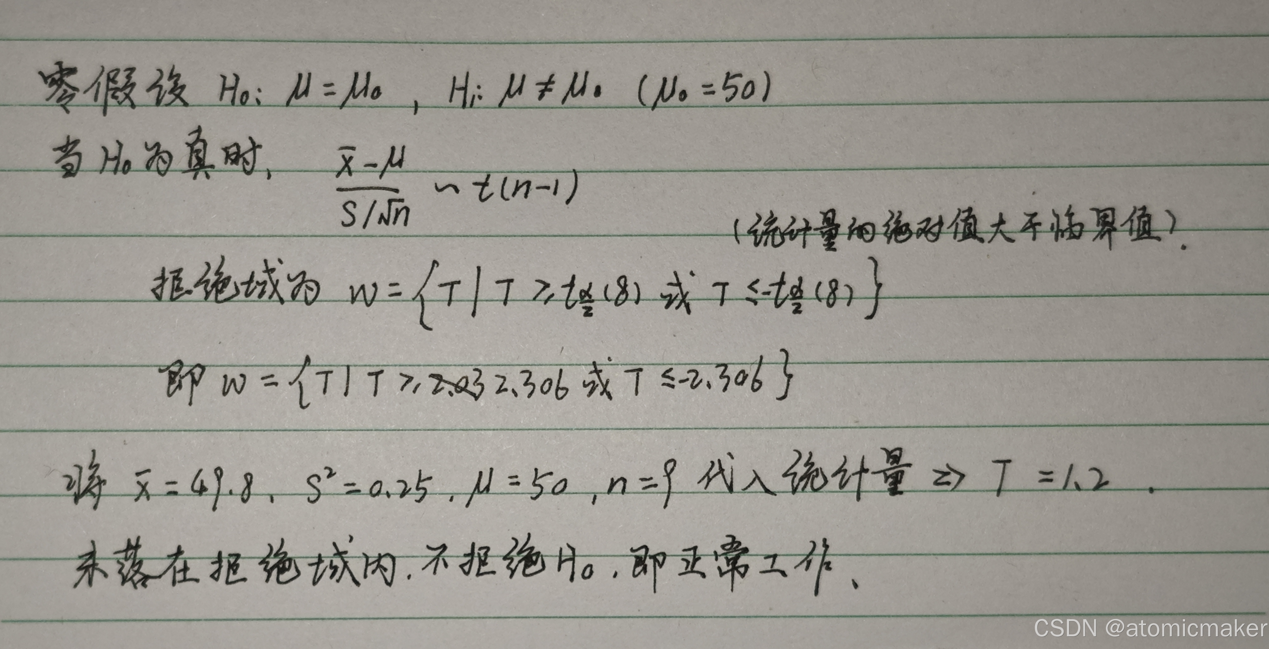 3.确定拒绝域