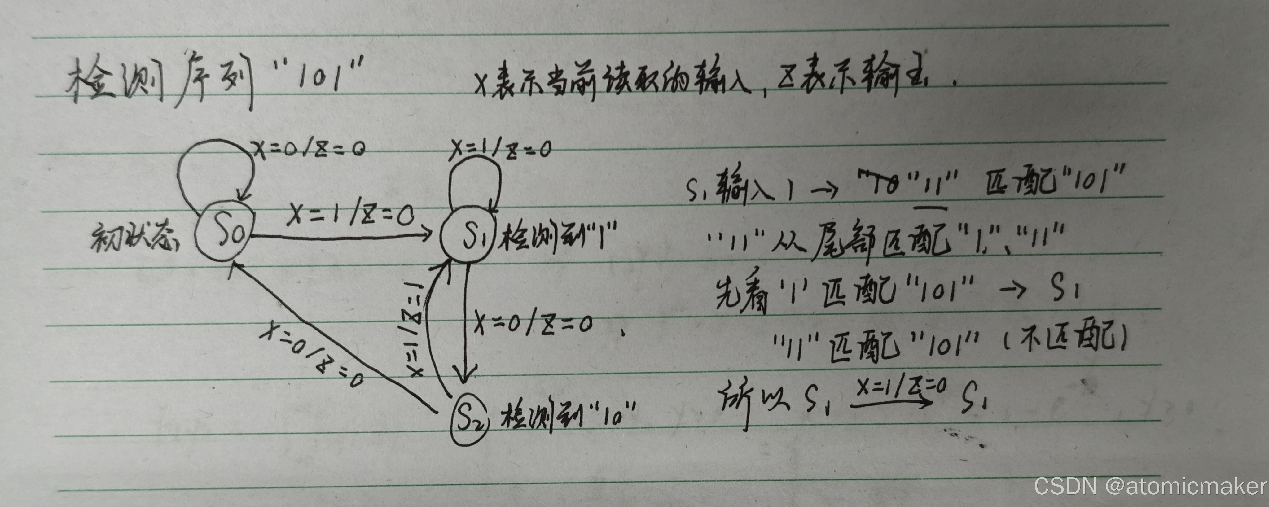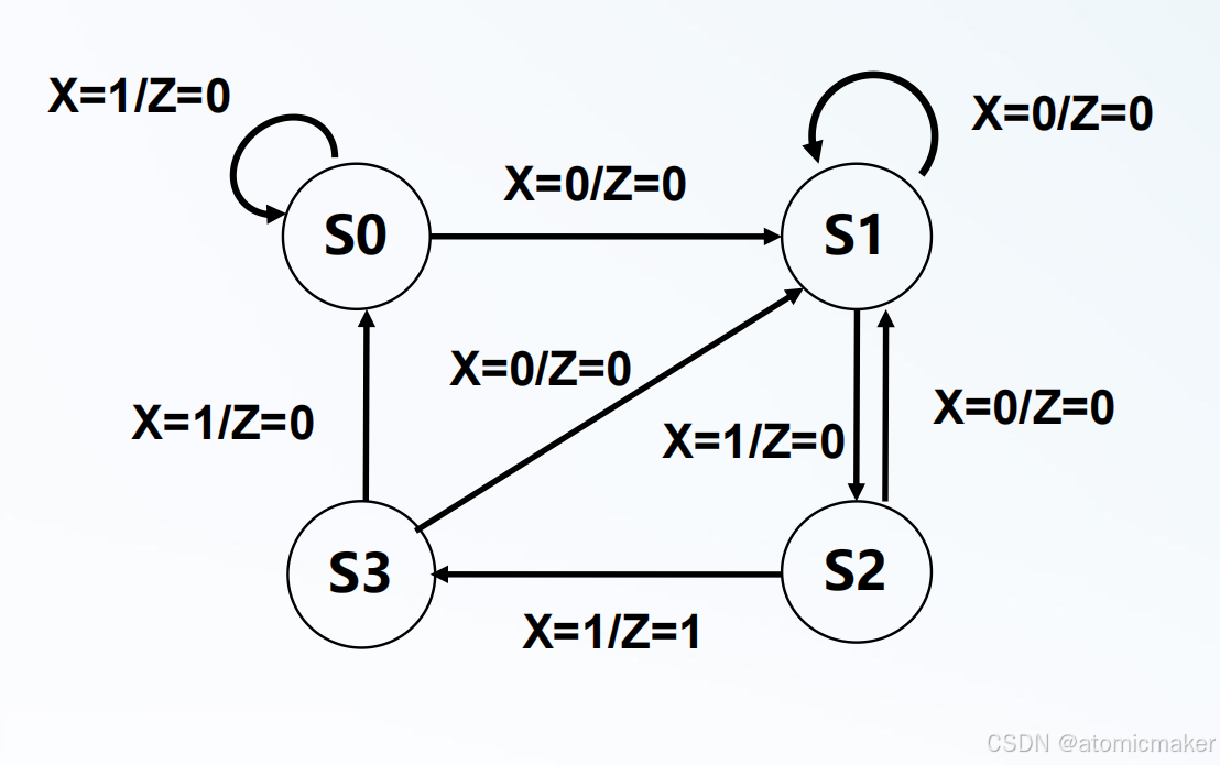 - Moore 型:输出仅由当前状态决定,与输入无关。
