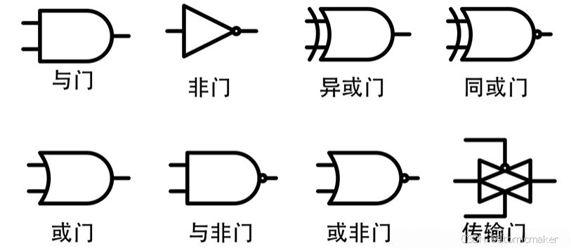 | 同或门 | 输出与异或门相反 | 输入相同出 1,不同出 0。 |