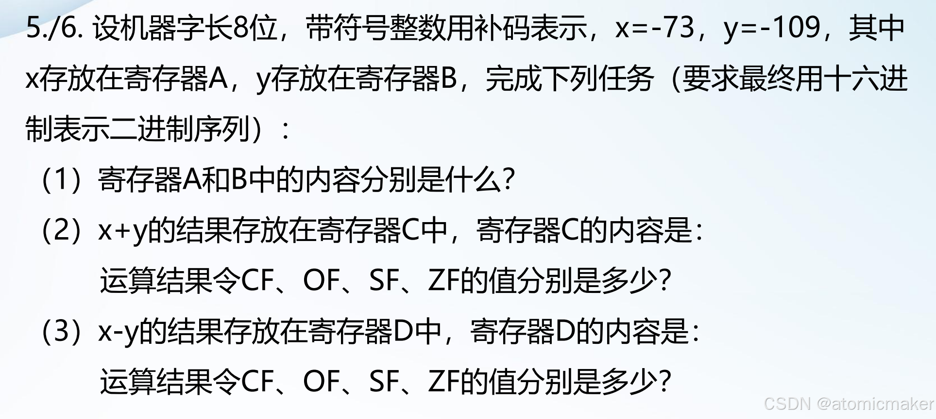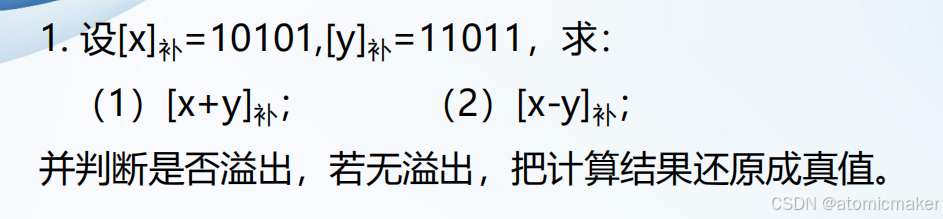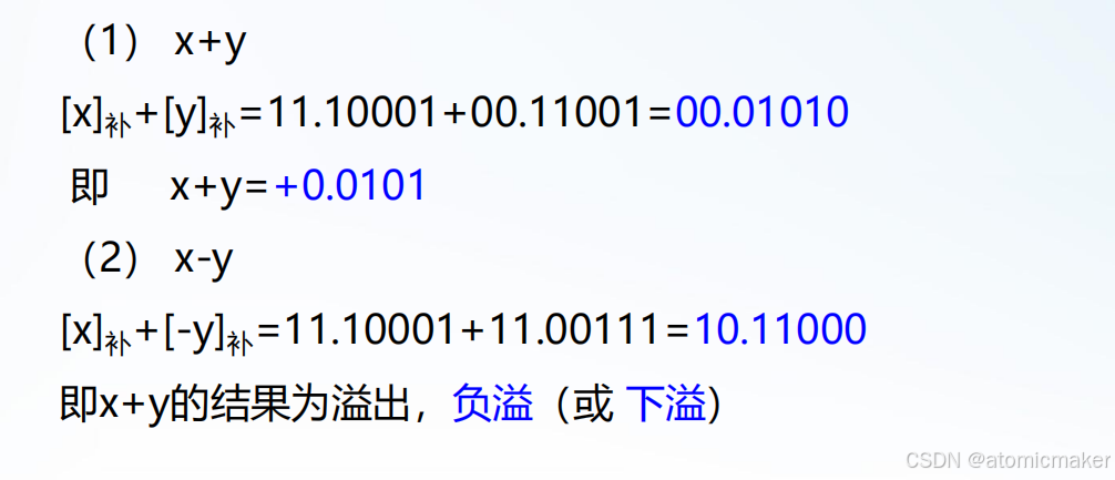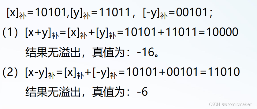 - 补码加法:[X + Y]补 = [X]补 + [Y]补