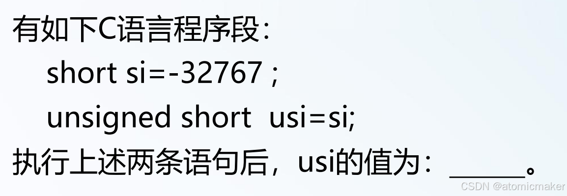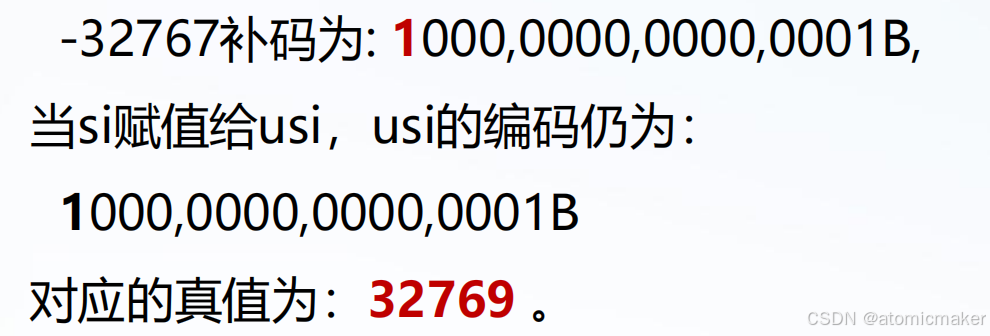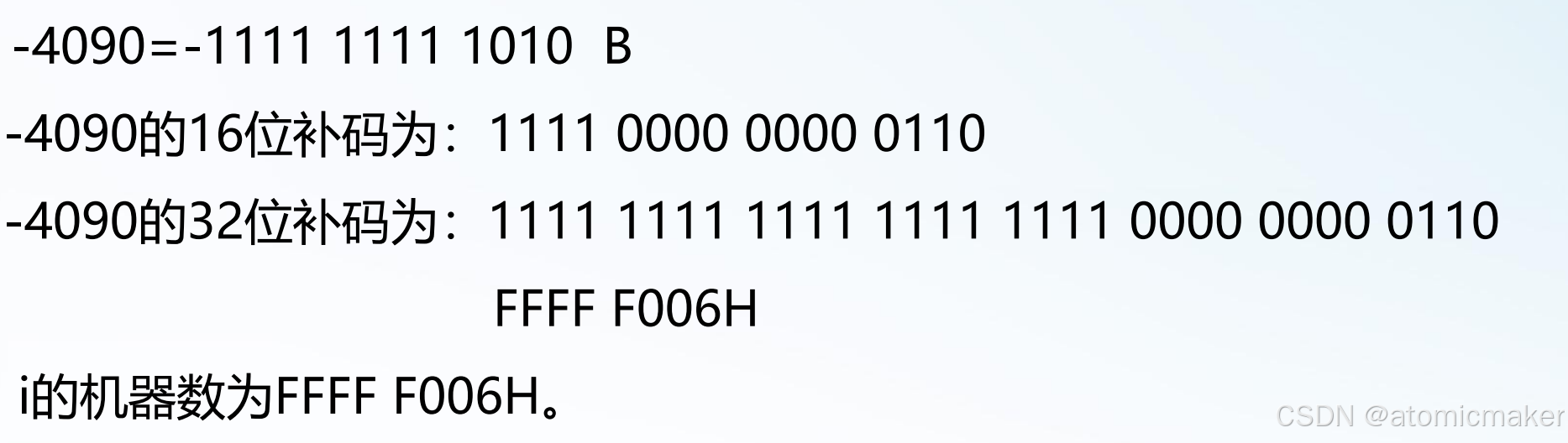| 补码 | 同原码 | 反码 + 1(符号位不变,取反加一) |